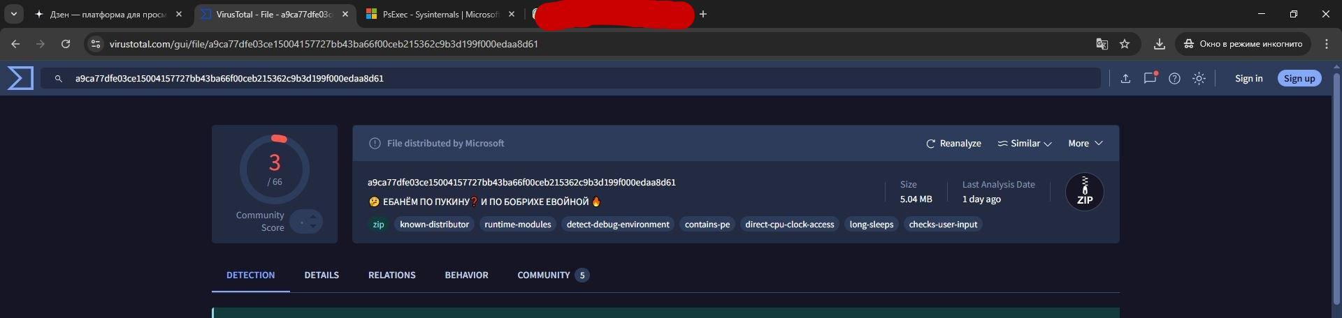 Без лишних предисловий. Понадобилось протестировать некоторые возможности PowerShell. Был неприятно удивлен, что таких базовых вещей нет "из коробки". Скачал архив с оффициального сайта Microsoft Learn, но где-то был пунктик, что ПО хоть и собственность Майков, но разрабатывается не ими (но ими подписано). Внутрненний шиз настоял проверить Касперским, решил ещё и на VirusTotal закинуть. Результат убил...