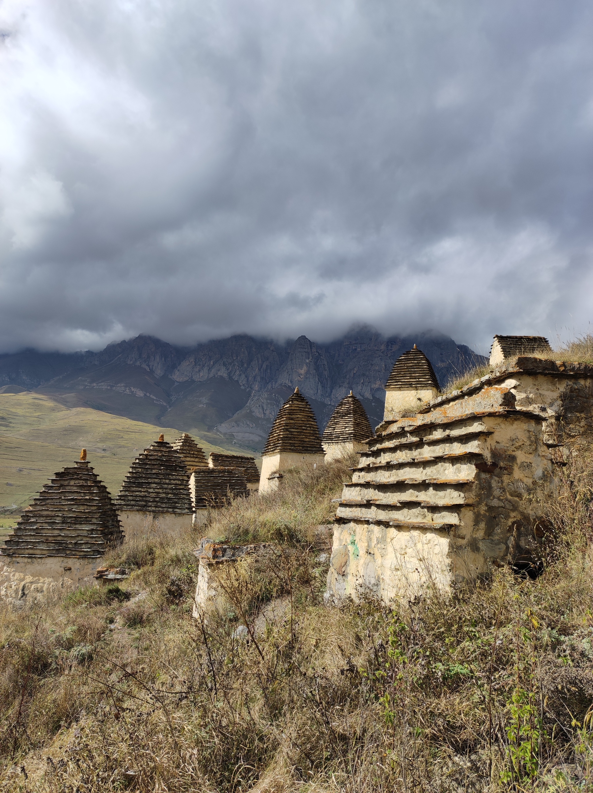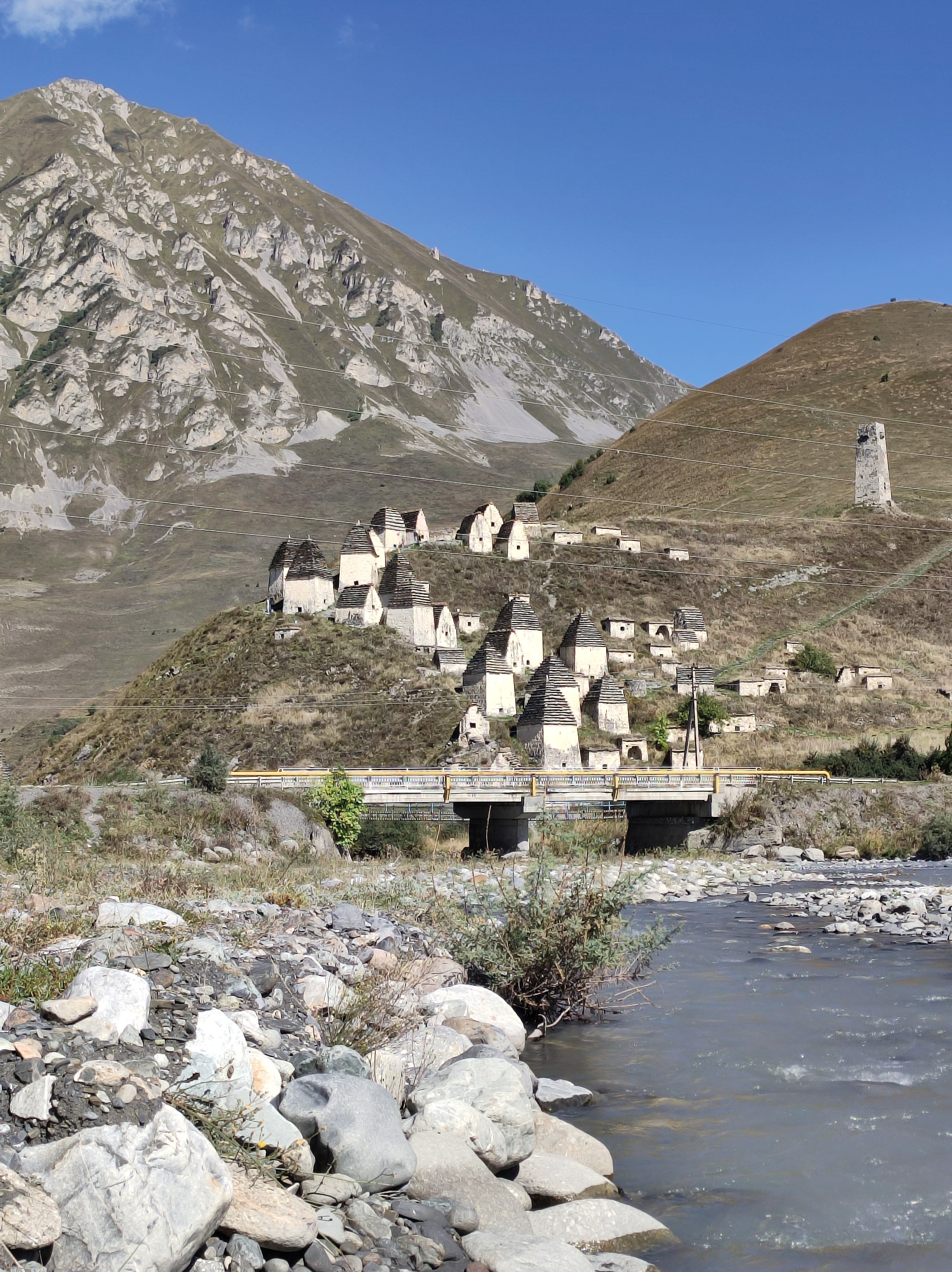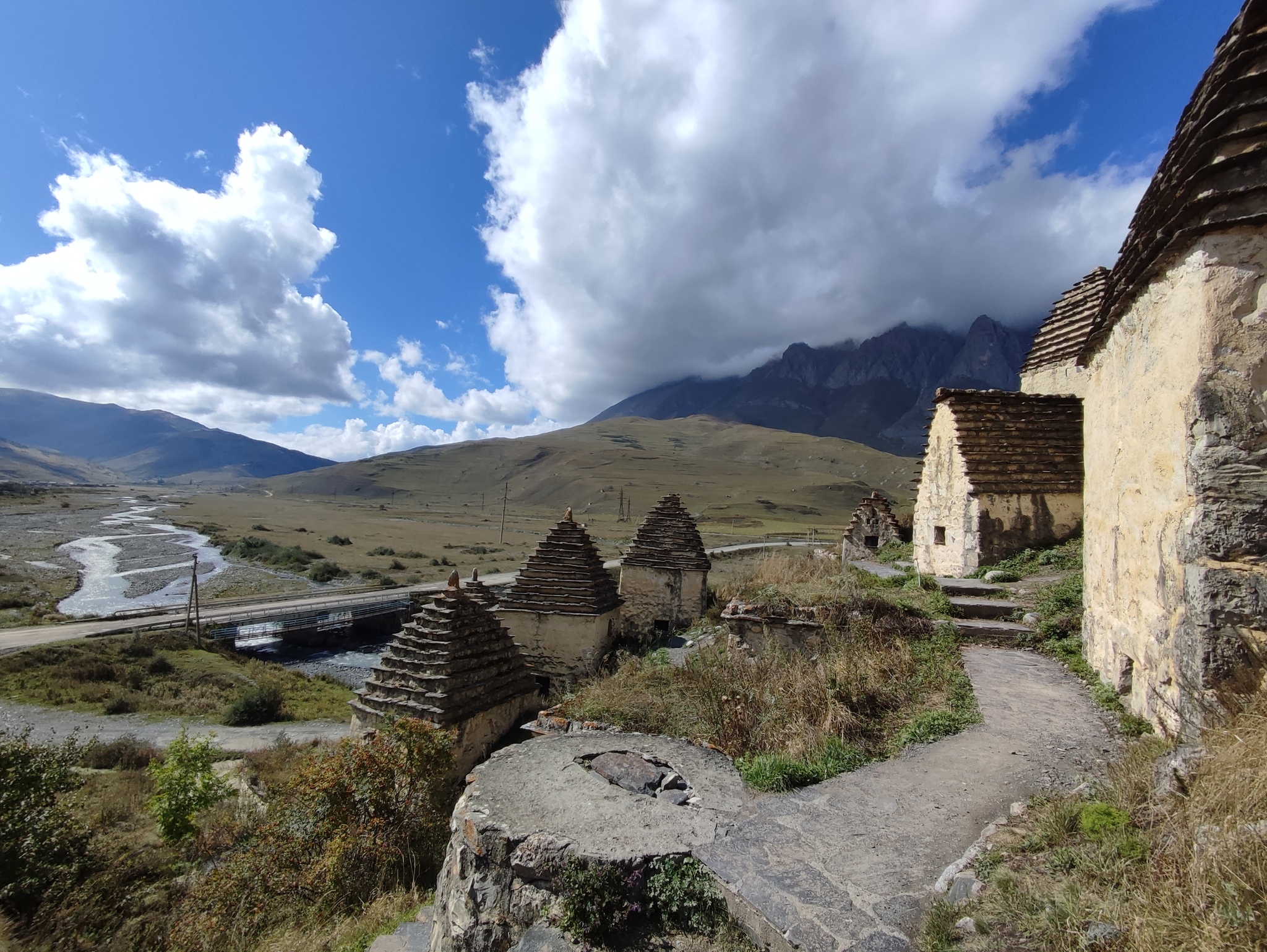 Живописное место и немноголюдное. Поселился в деревушке на несколько дней. Испытываю непередаваемые восторги человека, давно не покидающего город... Советую посетить, если будете рядом. Эти пирамидки - некрополь, а само село Даргавс чуть выше по реке.