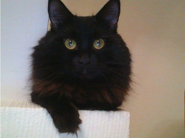 Это мой кот. Его зовут Дарт Вейдер. Ему полтора года, и его принесли мне со словами - "если ты его не возьмешь, его съедят собаки" Я взяла. Теперь он периодически ест меня, хулиганит, знает слово "Актимель", и звук, с которым он открывается) Все выкладывают своих котиков, и мой тоже попросил его выложить. Вот.