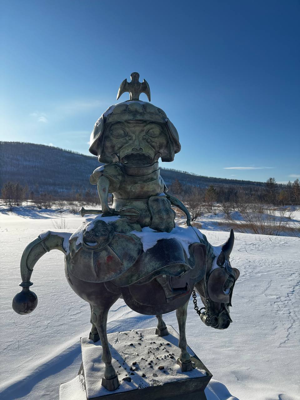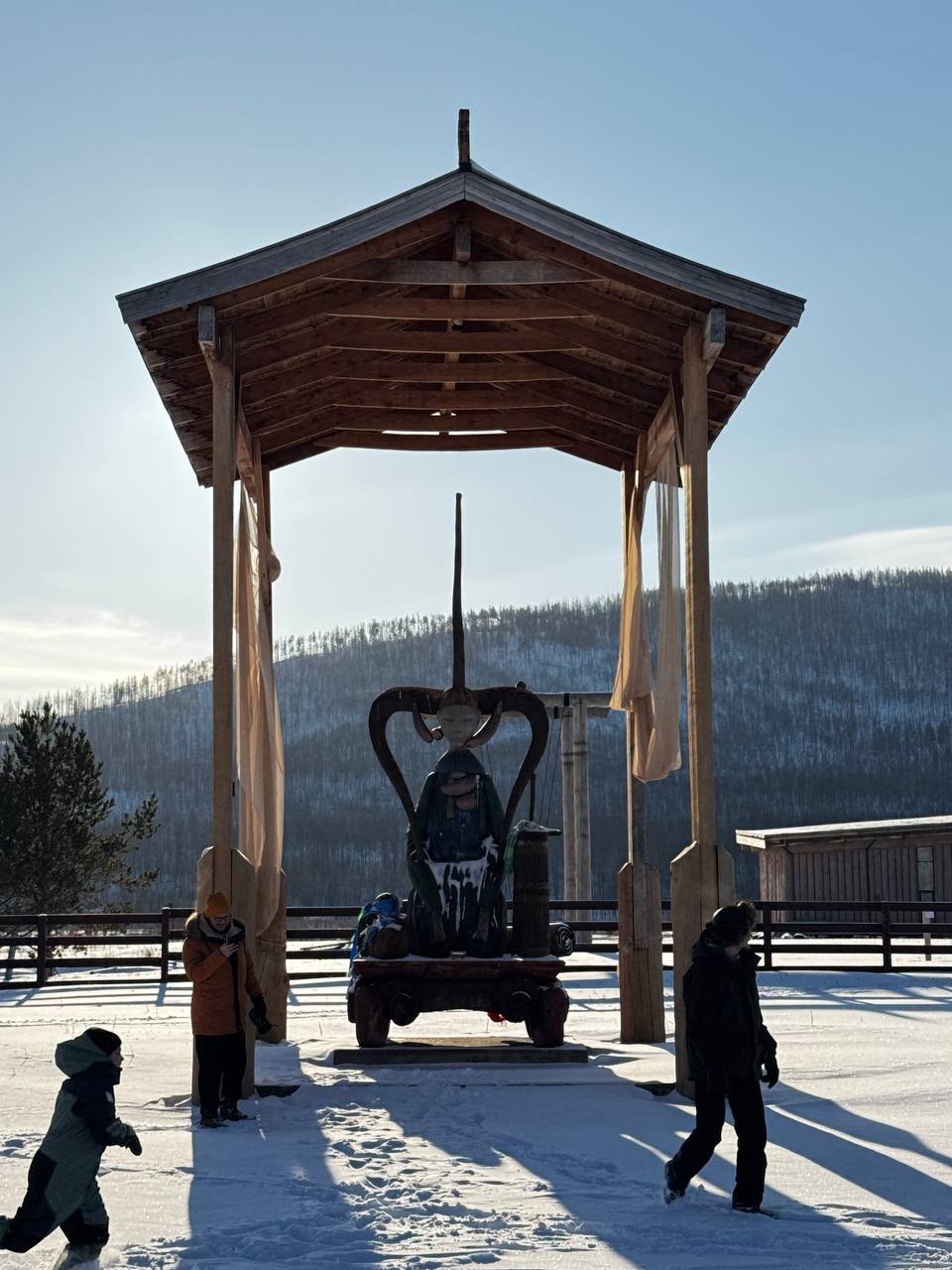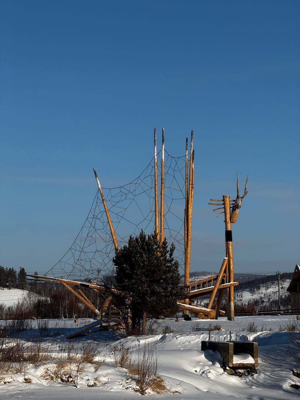 Возвращаясь к родному селу Намдакова, расскажу о появлении в 2021 году ленд-арт парка «Тужи», где под открытым небом выставлены работы из дерева, бронзы и других материалов. «Тужи» - переводится как «Сосновый бор», ведь парк расположен в лесной части на берегу реки Хилок, что почти сыграло злую шутку во время весенних пожаров 2025 года и именно здесь бушевал самый крупный в России пожар, в рамках этого сезона.