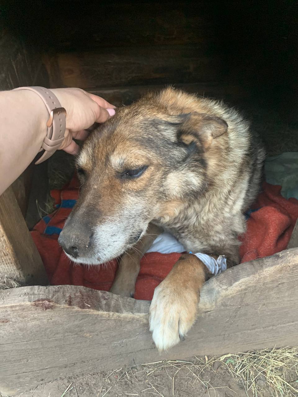 Вообще, Тимофей боец. Первая передряга его была в 2010 г, когда он прибежал к магазину клянчить еду и его порвали ротвейлеры.