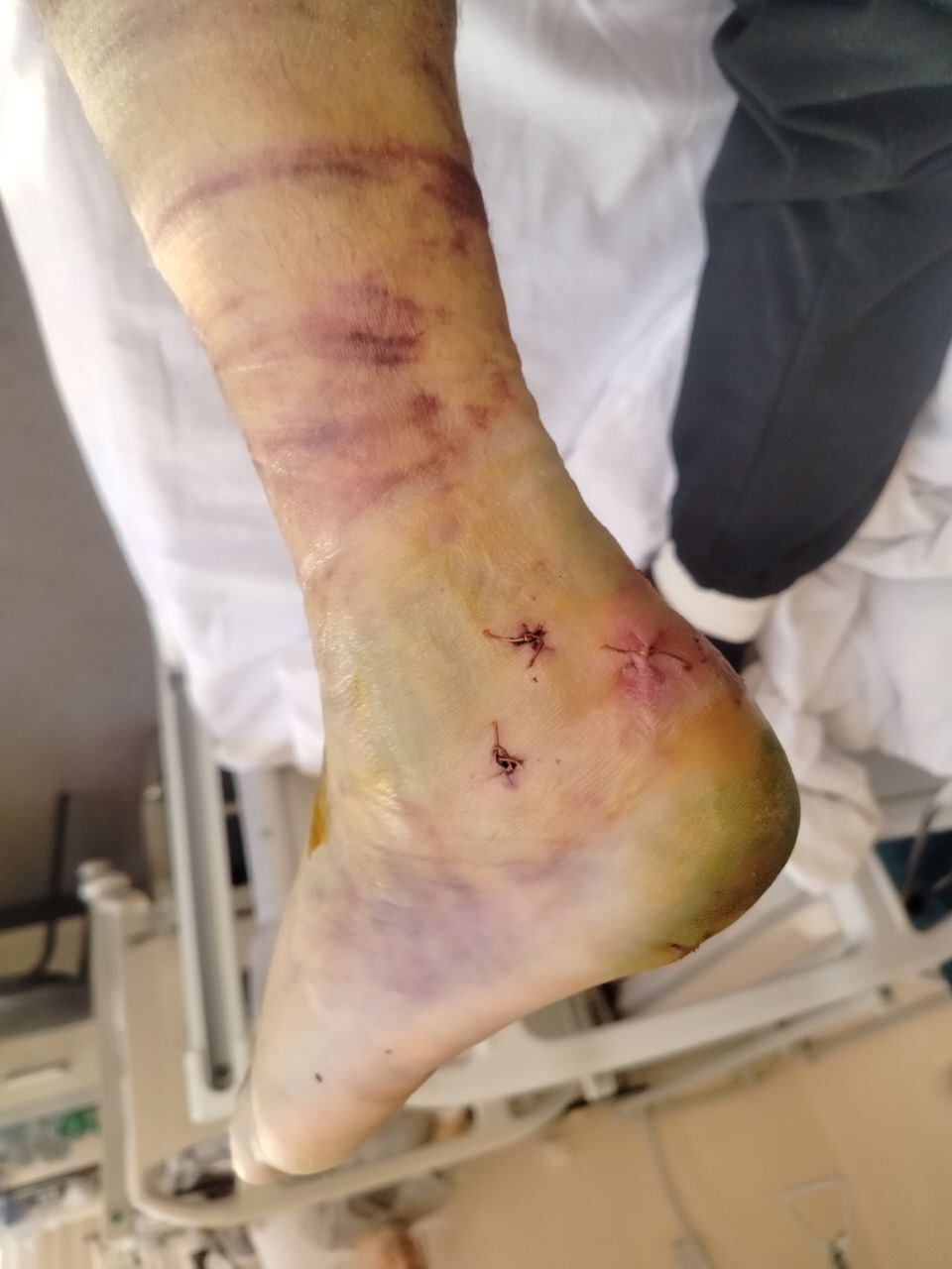 Для возможности передвигаться и наступать на ногу я купил хитрый ботинок с "парящей" частью, то есть я наступал на ногу, но сама пятка висела в воздухе: