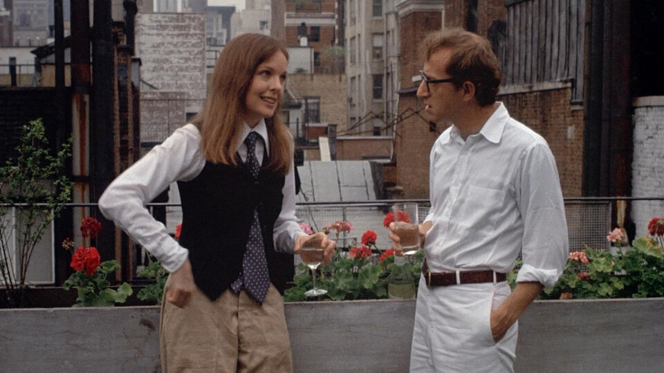 В остальном 1970-е прошли для Китон под знаком Вуди Аллена. Они впервые встретились в кадре в комедии «Сыграй это еще раз, Сэм» Херберта Росса — экранизации алленовской пьесы, которую Вуди и Китон уже играли на Бродвее. Подначиваемый воображаемым Хамфри Богартом, он влюбляется в нее, жену своего лучшего друга. Похожая коллизия повторится в «Манхэттене», где непередаваемо претенциозная журналистка («Борхесу со мной было очень комфортно») превращалась в элегантную тень на фоне моста Куинсборо или в полутемном планетарии (лучшие фильмы Аллена снял тот же оператор Гордон Уиллис, что делал и «Крестного отца»).