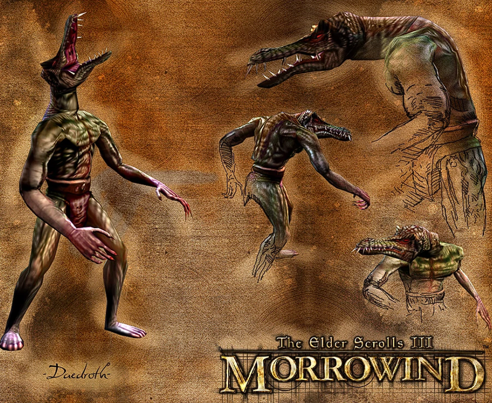 К этой фразе у любознательного каджита появилось сразу несколько вопросов. Во-первых, что же такое “даэдрот”? Изначально глупый каджит думал, что это единственное число от “даэдра”, но нет, оказывается, это частое заблуждение многих тамриэлеведов и жителей Нирна. На самом деле, даэдрот – это подвид даэдра, большая прямоходящая ящерка с большими зубами, смотреть в пасть которой, пожалуй, не рекомендуется вне зависимости от того, подарили ее или нет.