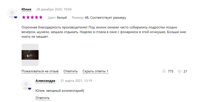 116 andrevnamk Сервис Дайте две!) 4 года назад искала в подарок ночную сорочку. попался отзыв (нашла я, поэтому мое) [моё] Wildberries Отзыв Крипота 3 Ещё 0