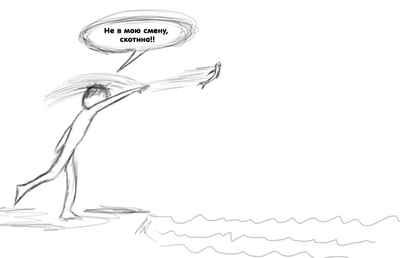 много сотен дней этот коммент провел в забвении, но вот я здесь, чтобы оценить его по достоинству и сказать- он реально охрененный! чувак, откуда такая фантазия :D по этому комменту можно написать рассказ