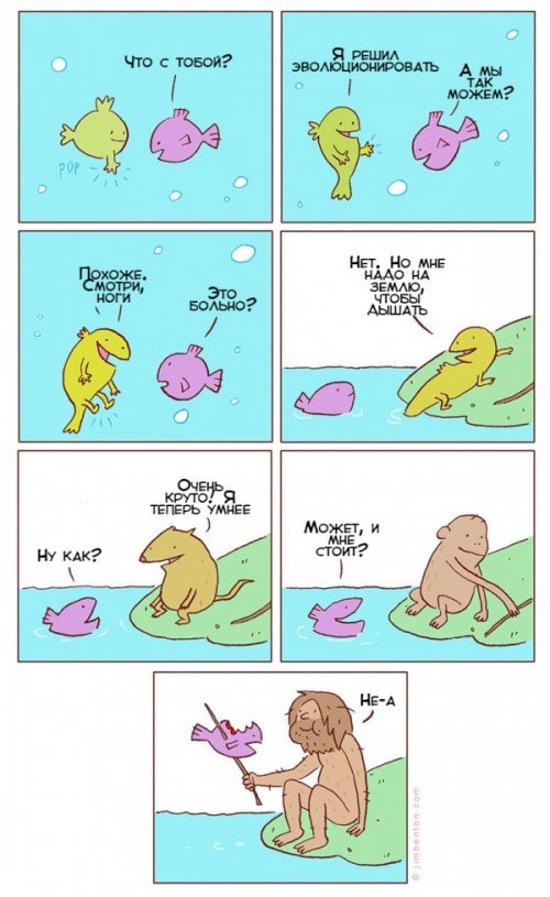 Если рыба, без знания языка, образования и опыта работы, к тому же только-что эволюцонировавшая, займет твое рабочее место, то ты неудачник.