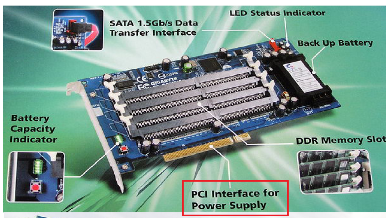 Значит, карта в порт PCI с 4 слотами DDR SDRAM (DDR200, DDR266 и т.д.), батарейкой и SATA портом. Зачем и главное зачем? Интерес взял свое и я скачал схему чтобы по ней понять что та плата делает. Первое безумное предположение что пришло мне в голову без схемы - это переходник PCI на DDR SDRAM типо как "SSD". Вот только чтобы данные не терялись при потере питания впихнули батарейку и добавили SATA порт чтобы посылать SATA команды. Правда весьма гениально пихать память с минимальной скоростью в 1600 МБайт/с через интерфейс с максимальной скоростью 266 МБайт/с. Наверное там используется SATA II, а то и SATA III. Быстрее будет, да и порт есть для чего-то. Надо смотреть схему.