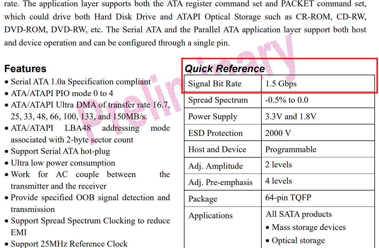 То есть PCI там только для питания. А данные передаются видимо через SATA. Стоп, почему 1.5 Gb/s? Листаем ниже.