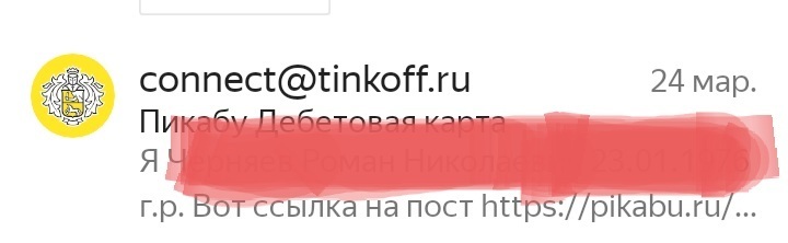 Привет. Хотели бы разобраться и проверить причины. Пришлете ФИО, дату рождения и ссылку на пост на connect@tinkoff.ru? Как все проверим, вернемся сюда с подробными пояснениями)