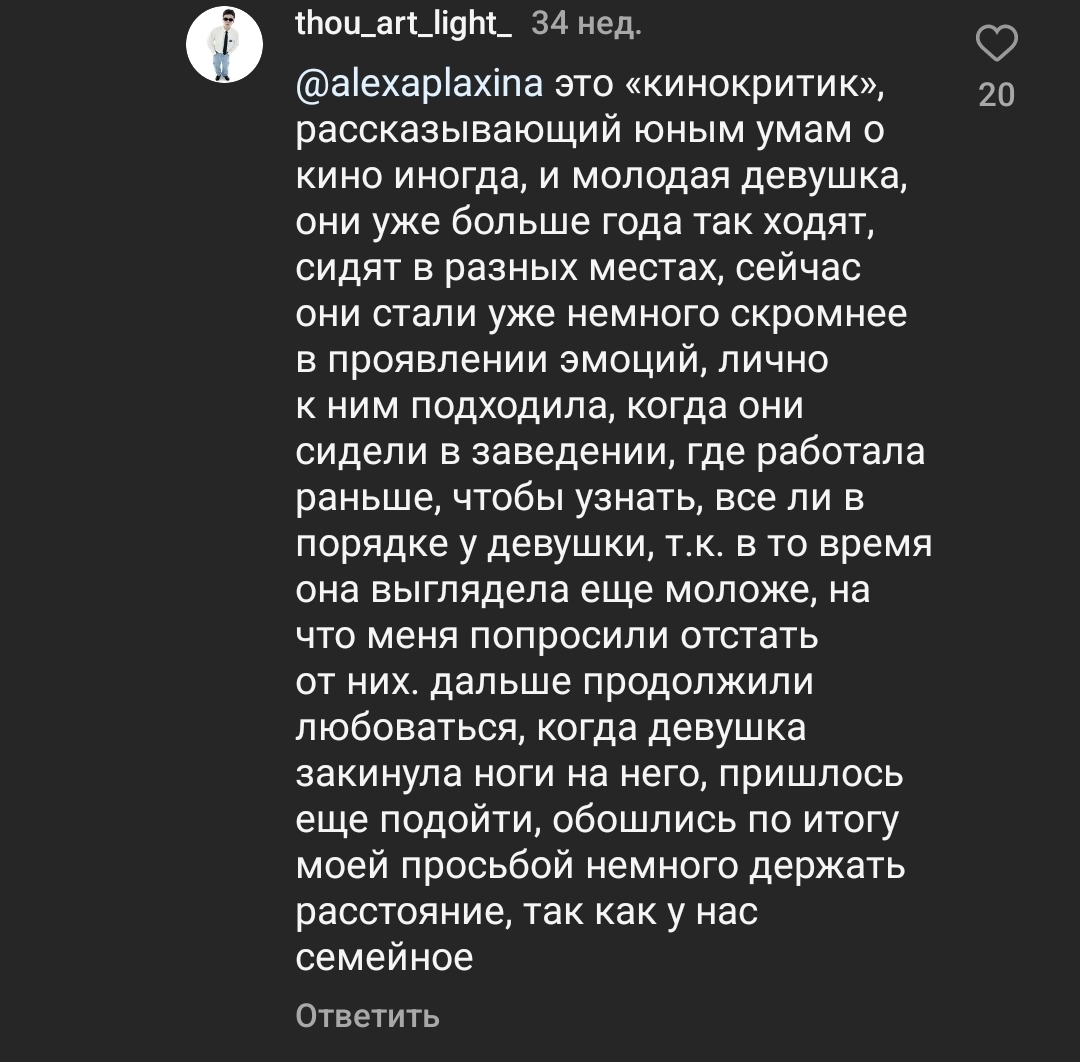 Однако сердобольные детективы деанонимизировали действующих лиц. Это кинокритик Леонид Цыткин и, ВНИМАНИЕ, его супруга!