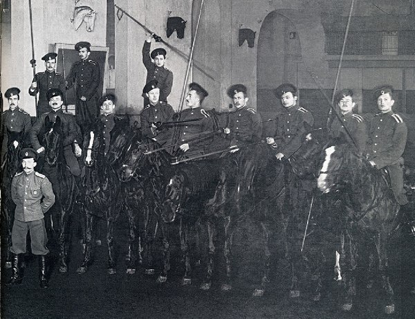 Дрессировка, которой мы подвергались в помещении школы днем и ночью, была жестокая и отличалась большим разнообразием. В нее входили и классические приседания, выполнявшиеся во всех углах и при всех случаях для развития "шлюза" и "шенкелей", и бесчисленные повороты направо, налево и кругом, чтобы довести нашу "отчетливость" до совершенства, и многое другое. Курительная комната, спальни, коридоры и все прочие помещения были постоянной ареной этих занятий. Дежурные офицеры, посуточно находившиеся в помещении эскадрона, делали вид, что ничего не замечают, так как понимали и ценили эту систему, сочувствовали ей и