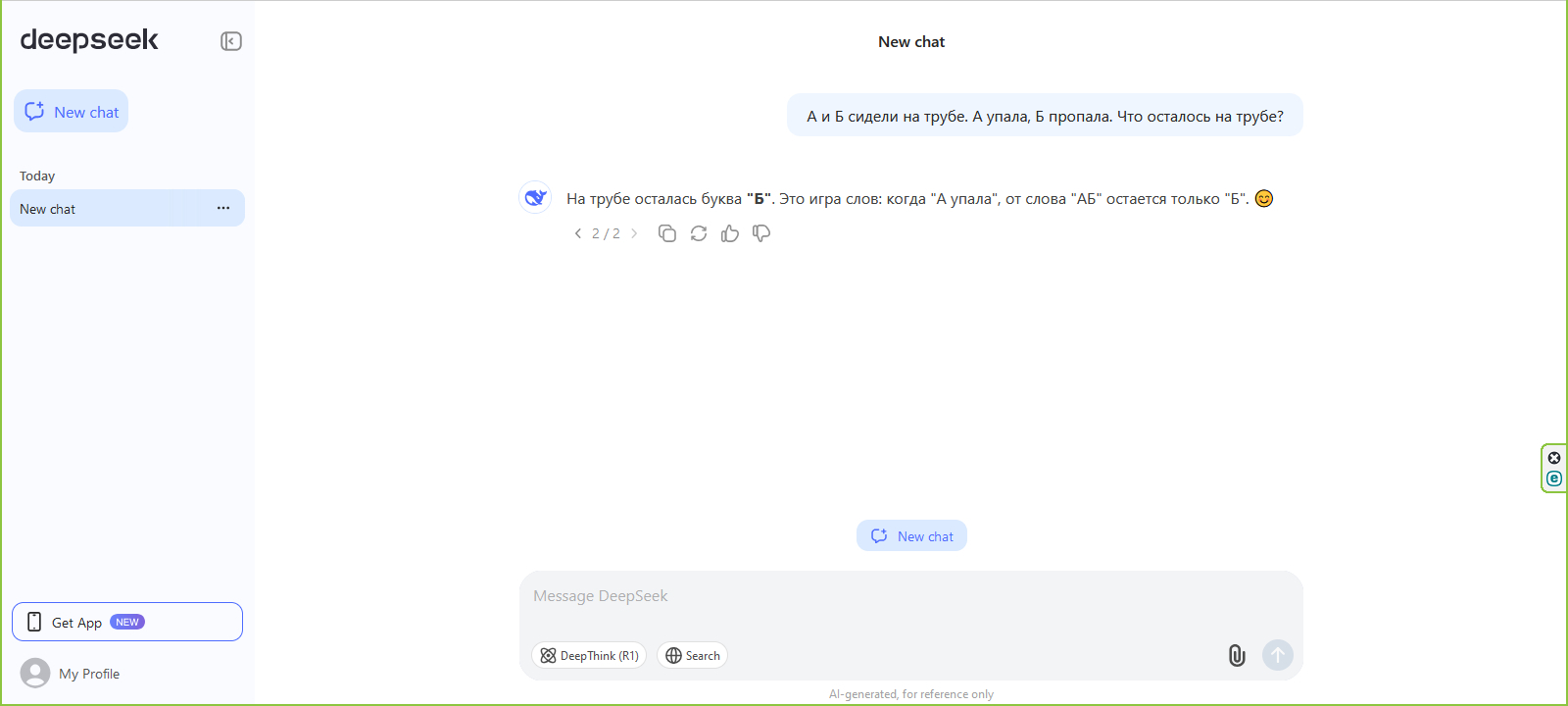 4 mpetin DeepSeek, есть еще чему учиться! 11 месяцев назад [моё] DeepSeek Fail Отроки во Вселенной Искусственный интеллект 1 Ещё 0