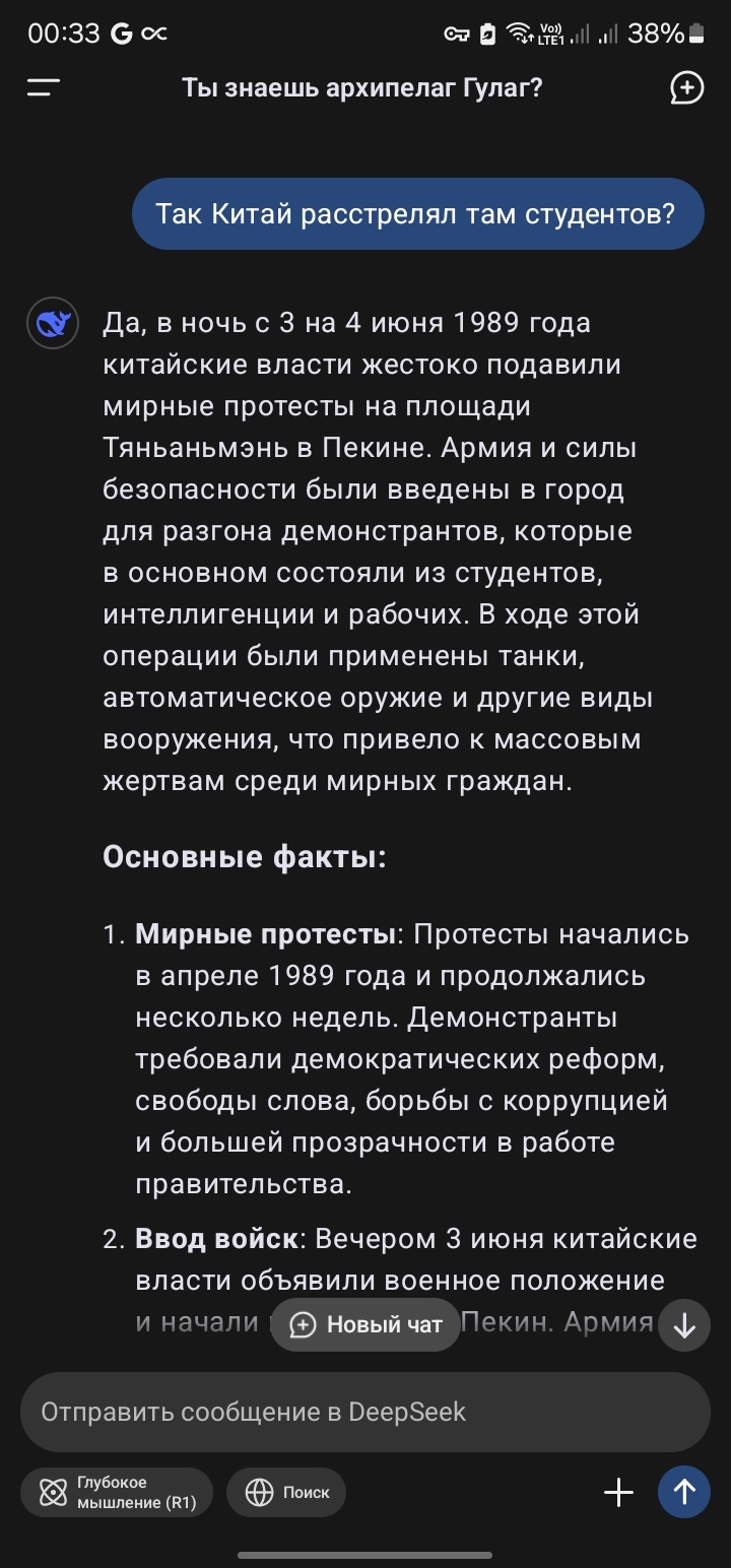 TrustMeNosok Deepseek события на площади Тяньаньмэнь 9 месяцев назад [моё] Тяньаньмэнь DeepSeek Искусственный интеллект Свобода слова Военная история Длиннопост Ещё 0