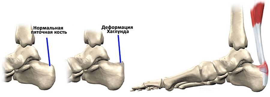 Деформацией Хаглунда считается компенсаторная деформация пяточной кости – в верхней ее части формируется образование костно-хрящевого нароста (экзостоза). При отсутствии воспалительных процессов экзостоз не создает болезненных ощущений, но визуально деформирует пяточную кость.