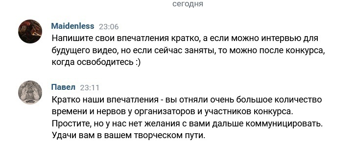 Несмотря на эти железобетонные доказательства, я решил дисквалифицировать все три работы. Если бы на этом история закончилась, я бы не стал писать этот пост. Но представление вышло на новый уровень.