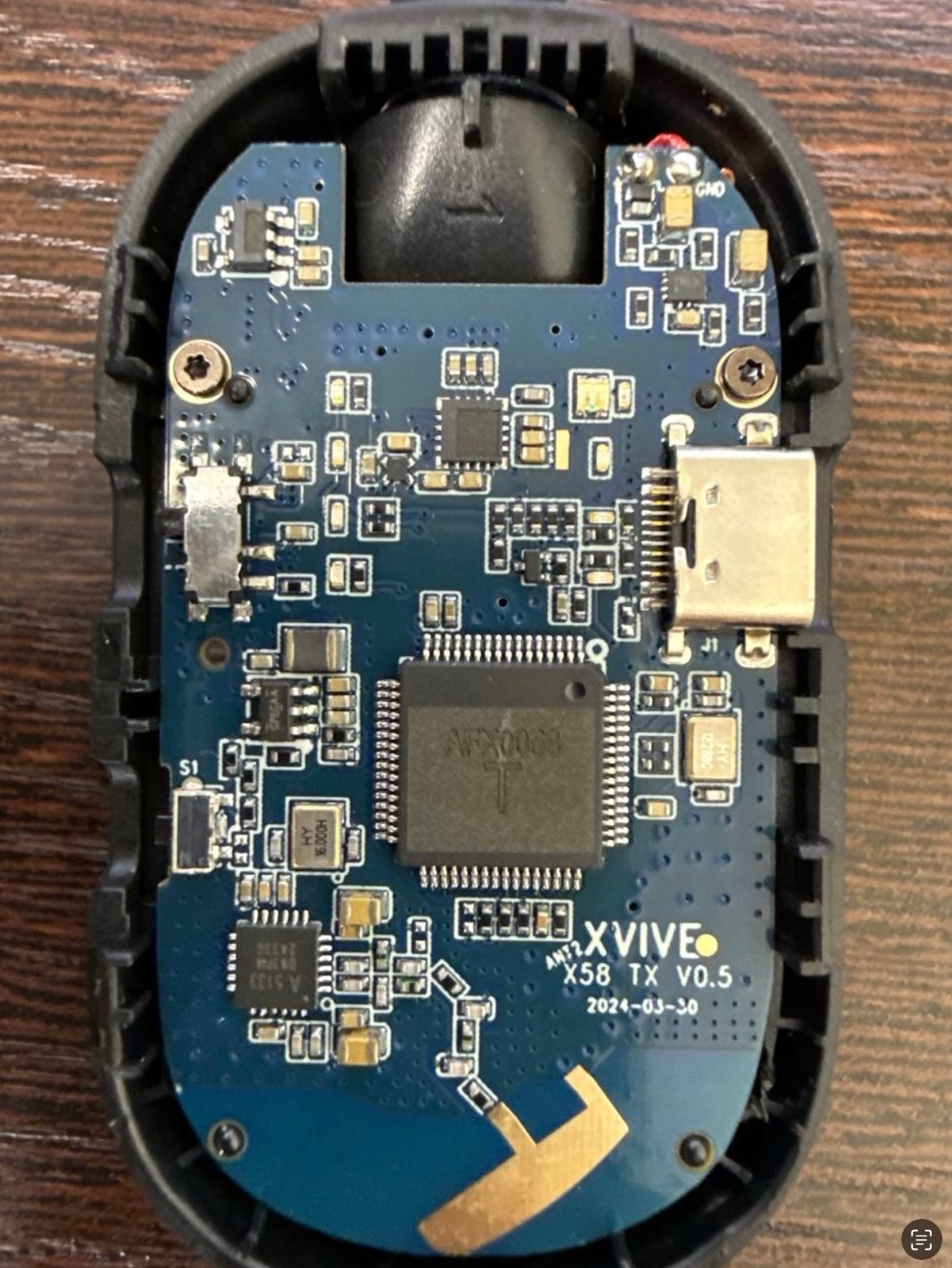 Разобранный A58. Виден передатчик A5133, но непонятно, чем они кодируют звук — на чипе спилена маркировка