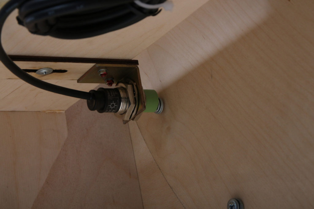 Также для облегчения пуска, конструкцию платформы я сделал скользящей: при запуске и остановке она может провернуться на валу. Кадров заложили 16 шт — минимально необходимое, чтобы увидеть магию анимации. Большее число кадров сокращало сектор кадра на круге, что не очень хорошо. Синхронизация кадров при помощи индуктивного датчика и головок саморезов.