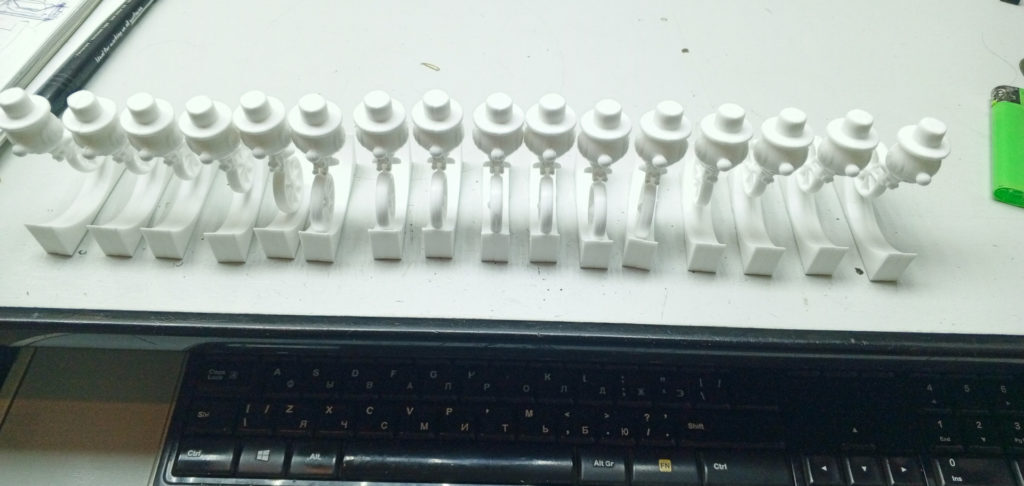 Фигурки решили печатать из двух половинок и склеивать — так исключалась постобработка с удалением поддержек, да и фигурки получались симпатичные и прочные. Печатал из белого ПЛА.