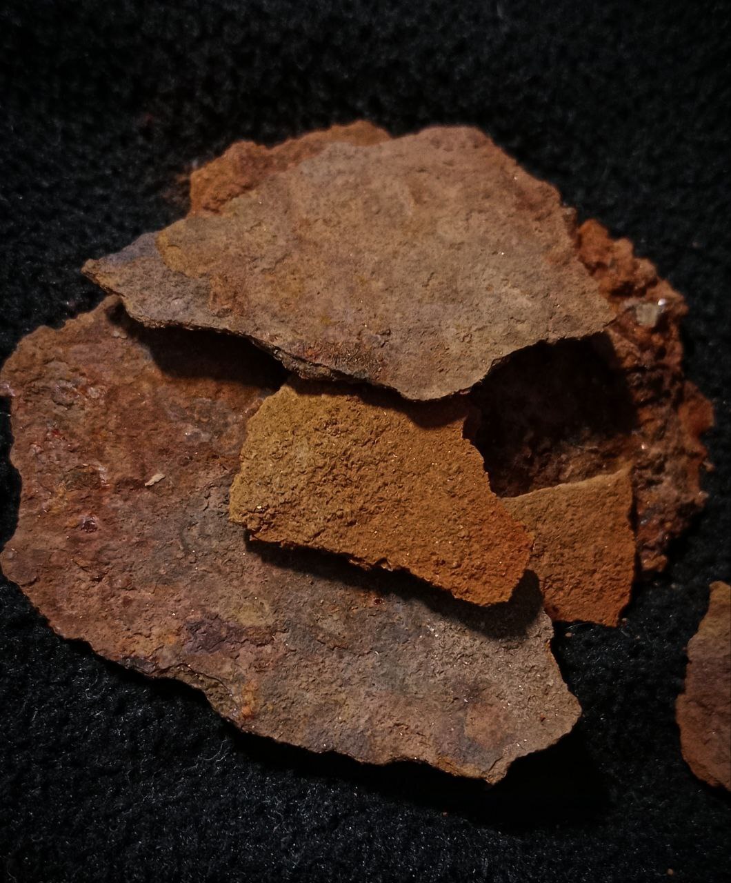 Слева направо: ржавчина калёная, ржавчина стоковая, неизвестный камень, кирпич. Сверху притаился уголь