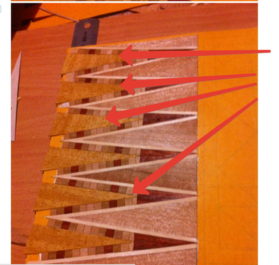 Остались незаполненными длинные полосы и углы,их я буду делать, как закончу все основные участки. Исходя в первую очередь из того какой шпон останется в нужном количестве и подойдет по цвету и структуре.
