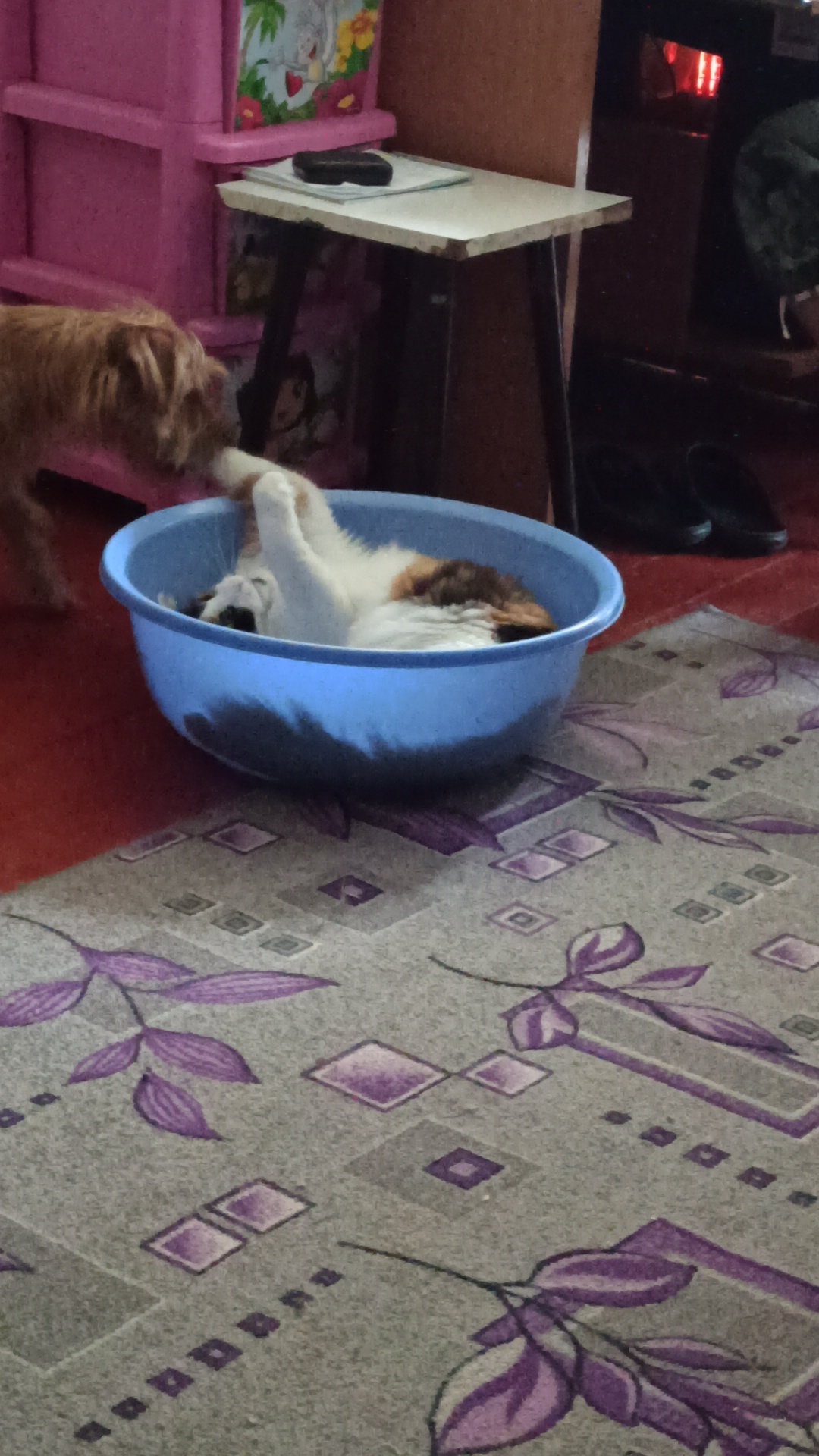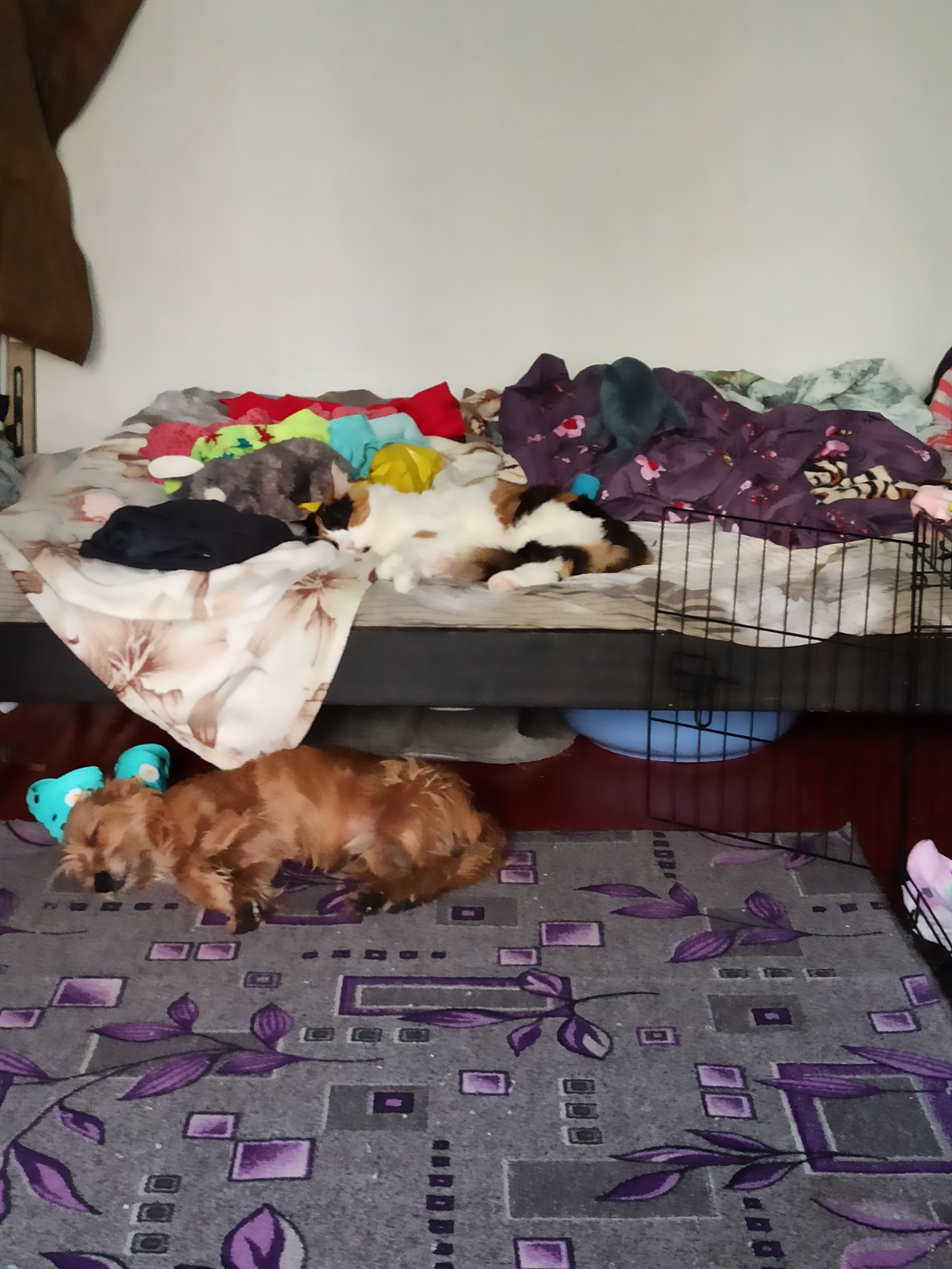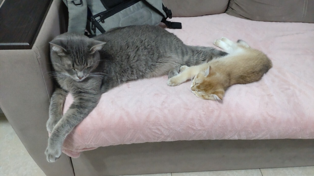 У младшей шерсть такая, что сможет спать зимой на улице без особых неудобств, так что не переживайте за нее)