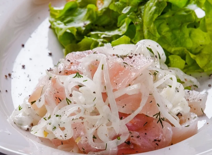 Способов приготовления этого блюда очень много, я расскажу о том, который считаю наиболее классическим и использую сам. Понадобится для него Соль, Перец, Лук репчатый, Уксус и Растительное масло. И рыба, конечно же!