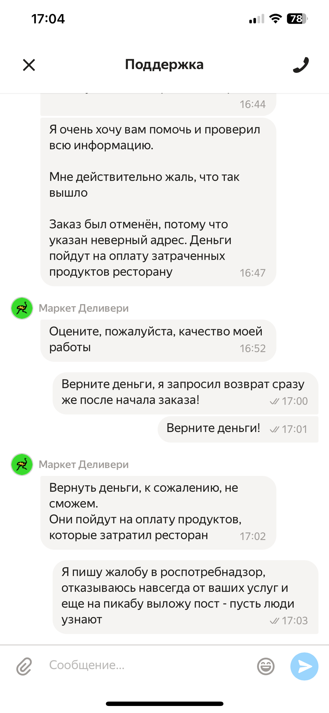 UPD: пишу для умников, которые считают сервис правым - деньги вернули в виде бонус-кода на следующий заказ.