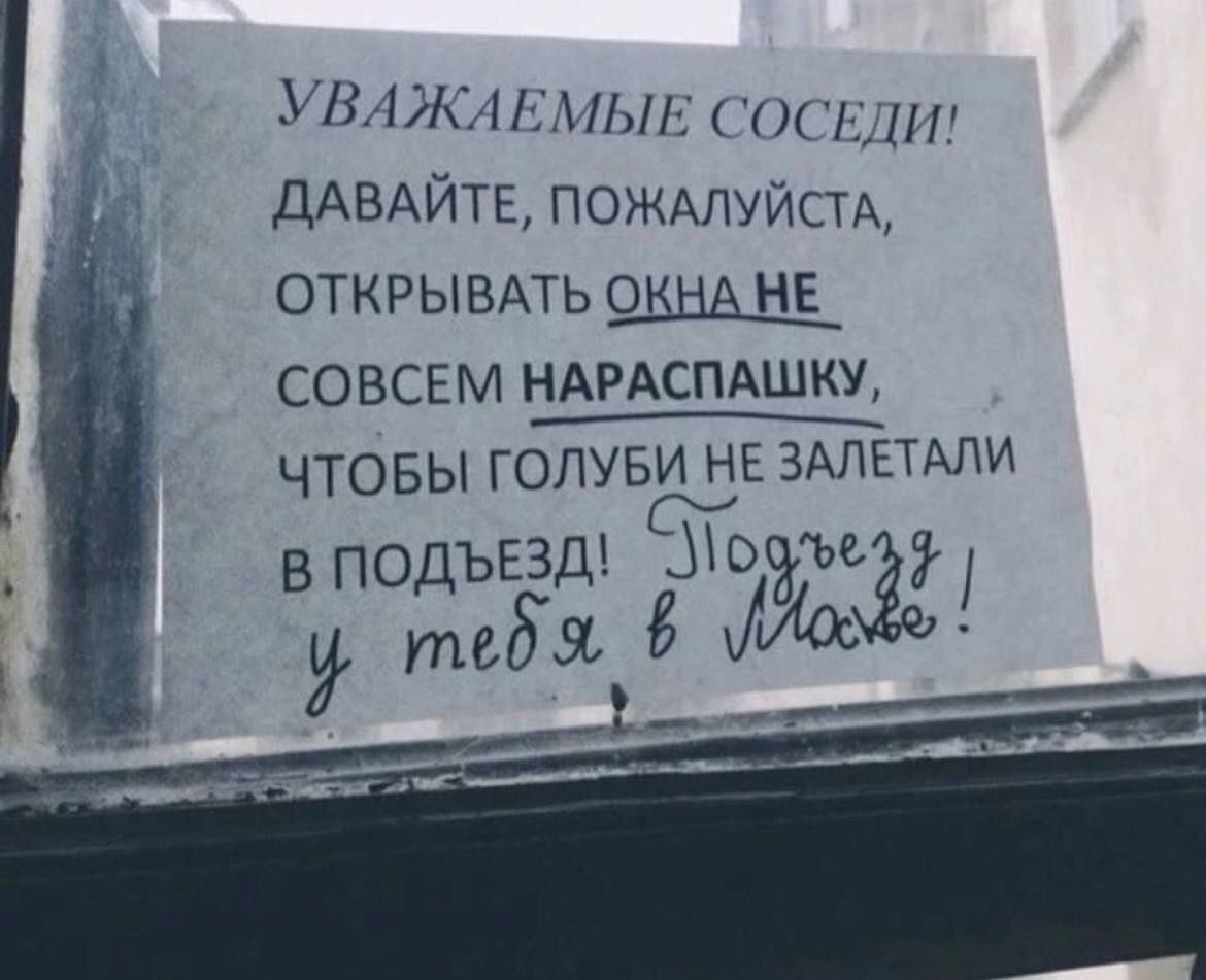 731 toptomysh ВПитере Юмор Дельное замечание 7 месяцев назад Юмор Подъезд Парадная Санкт-Петербург Москва Объявление Голубь Соседи Повтор 44 8 5 Ещё 0