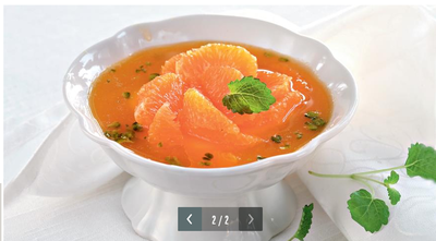 ИНГРЕДИЕНТЫ 4 ч. л. белого сахара (или по вкусу) мята свежая 1 ч. л. крахмала (лучше рисового) 600 г мандаринового сока 3 мандарина 2 ст. л. несоленых фисташек ванильное мороженое для подачи СПОСОБ ПРИГОТОВЛЕНИЯ Крахмал развести в столовой ложке воды. Фисташки очистить от скорлупы. Мандарины очистить, разделить на дольки. В сотейнике подогреть мандариновый сок, добавить сахар, довести почти до кипения и снять с огня. Ввести разведенный в воде крахмал. Перемешать, добавить очищенные фисташки, листики мяты и дольки мандаринов. Разлить по тарелкам. В центр каждой тарелки выложить по шарику ванильного мороженого и сразу же подать.