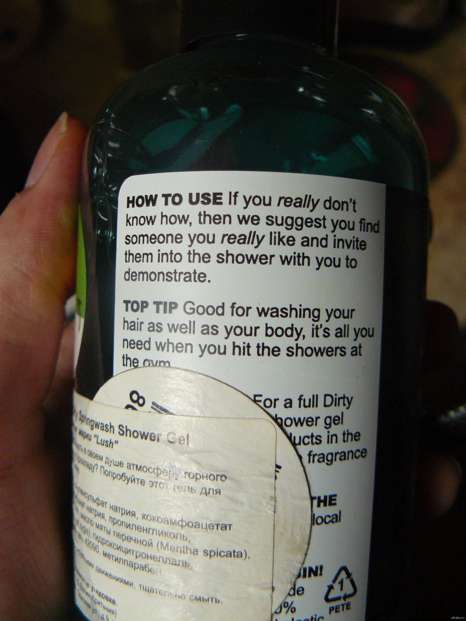13 RYOU Дельный совет от геля для душа. 12 лет назад ПЕРЕВОД: как использовать: если вы действительно не знаете как, тогда мы предлагаем вам найти того, кто вам нравится и пригласить с вами в душ для демонстрации. [моё] Надпись Гель для душа
