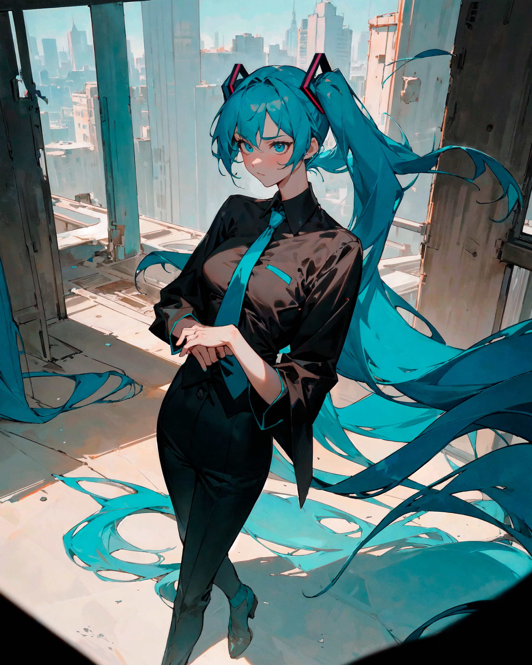 Деловая Мику шарится по стройке и разбрасывает свои волосы