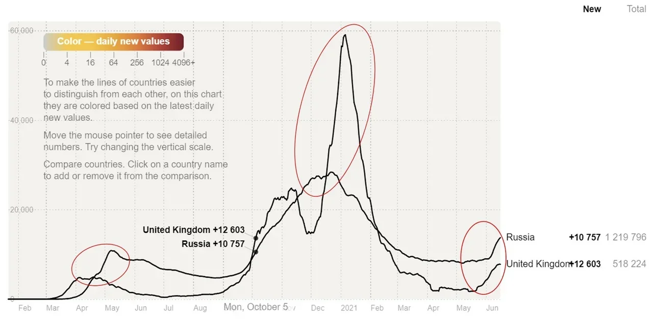 "Еще более печальным становится тот факт, что из-за огромной доли среди населения не желающих вакцинироваться ковид-диссидентов, Россия становится идеальным местом для «выведения» новых мутаций коронавируса, еще более опасных чем дельта."