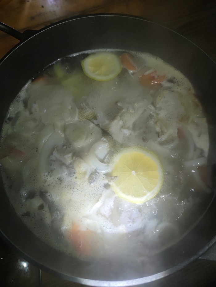 В темноте мы вернулись в кемпинг, Милослава уснула ещё в катере. Мы с Серёжей сварили уху, чтобы дети утром перед дорогой хорошо поели)
