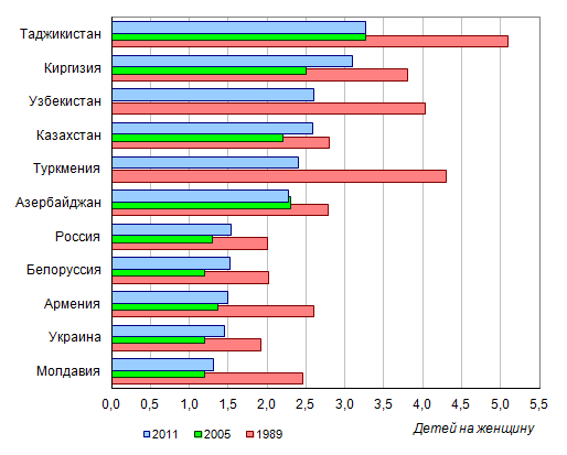 Например - коэффициент рождаемости по странам бывшего СССР наиболее высок в Таджикистане.
