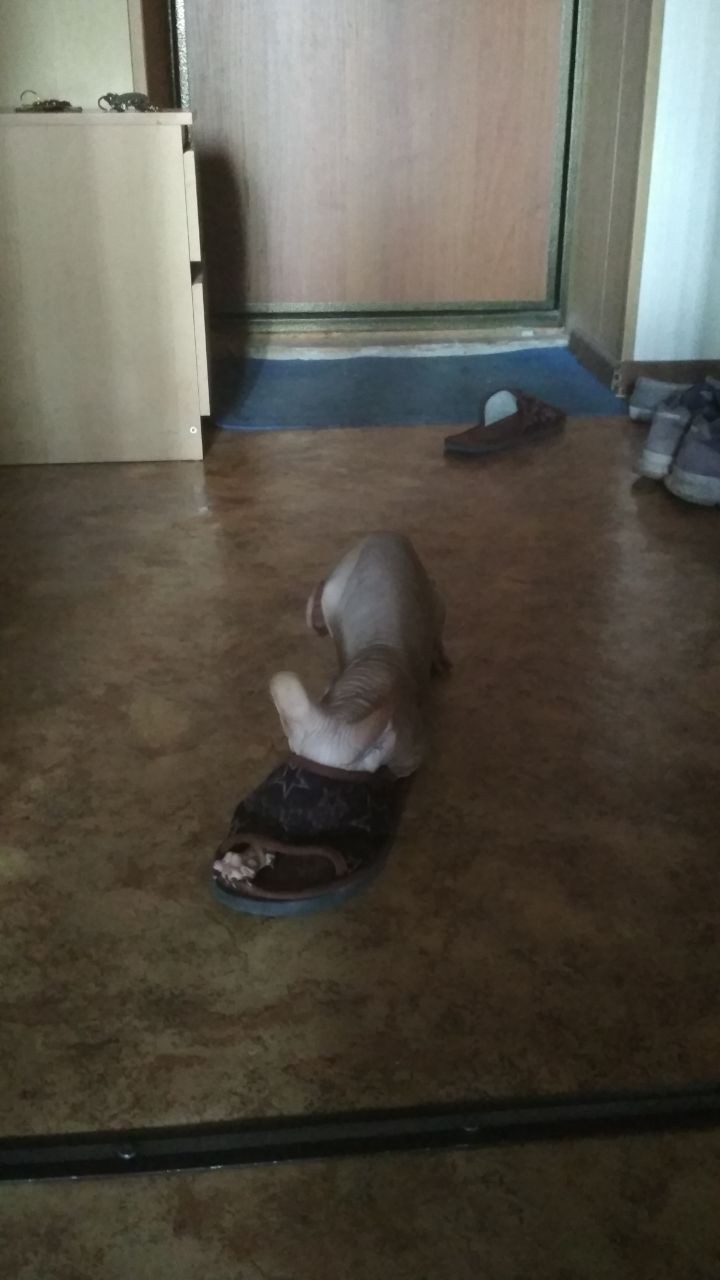 2. Так как кот лысый, греться он любит от любого доступного ему источника тепла: человек, батарея, солнышко и т.д. И когда он греется - отрубается на раз-два. Сейчас зима, и сфинкс ищет способ быть обогретым все время сна. Поэтому может прикорнуть на батарее бытового обогрева. Важно, чтобы кот не ложился своими голой жопой и пузом на награждение поверхность, кожа очень чувствительная, ничем не защищенная, может получить ожоги. Если у вас есть такая удобная батарея, то лучше обезопасить ее и застелить чем-нибудь, чтобы котэ не пострадал. Наш, например, облюбил электрическую батарею, все время сидел рядом с ней, я сделала ему лежак из старой подушки и он стал на ней спать и греться от батарее. В один из таких моментов дремы, он прижег лапу об нее, вышел из спящего режима, взлетел на 1.5 метра вверх и ударился об кресло, потом шмыгнул от непоняток произошедшего под ванну. Не выходил оттуда полчаса точно и шипел. На лапе был след ожога, но прошел за неделю. Теперь спит у батареи аккуратнее.
