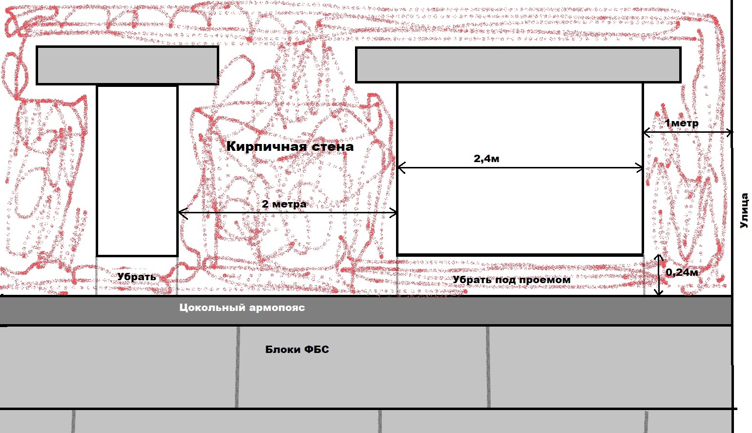 Дано: внутренняя несущая стена с проемами. толщина стены - полтора кирпича.