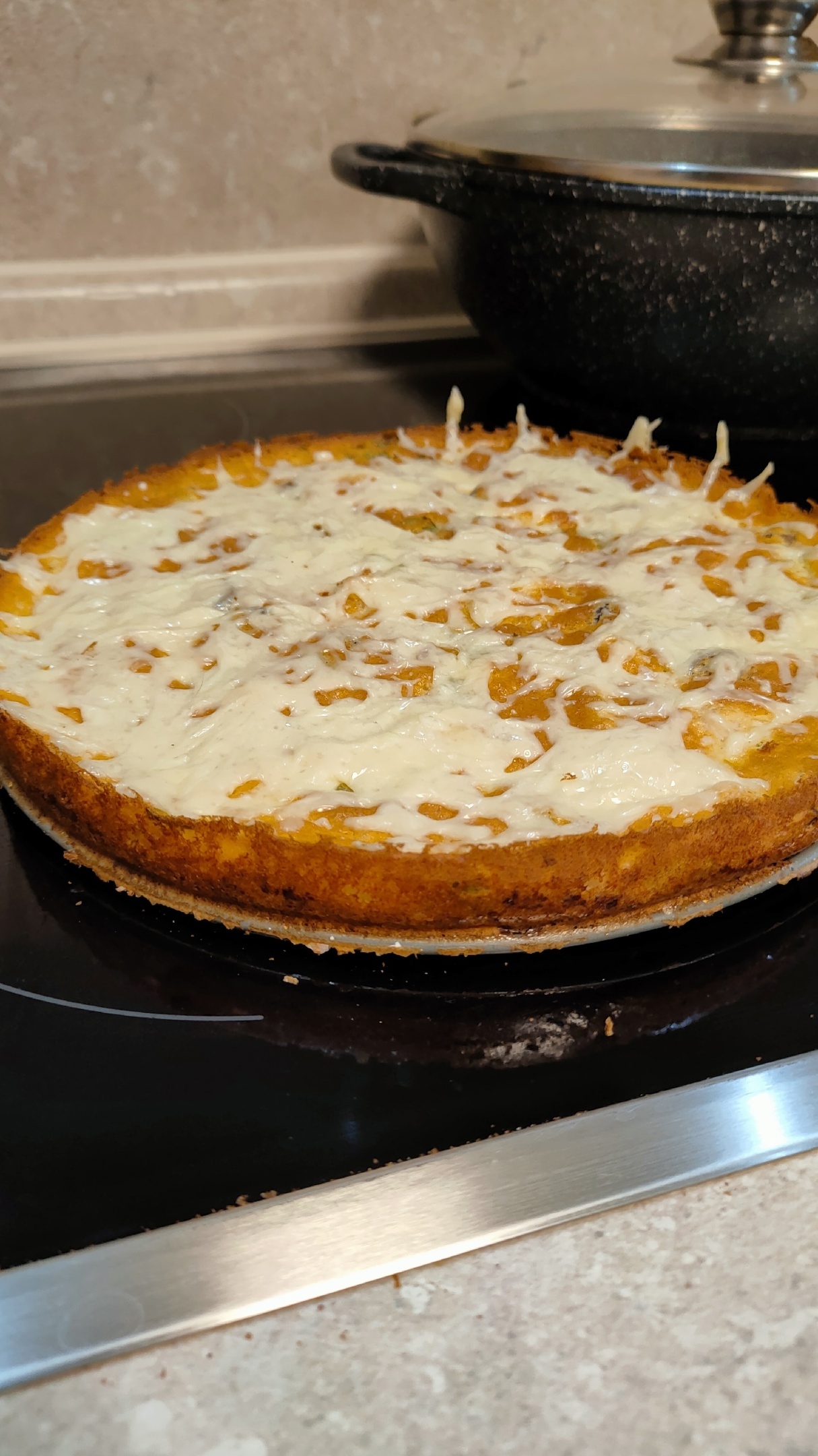 Предвидя Ваше негодование, повторюсь да, худеть вкусно можно! Это высокобелковый полезный пирог. Муки там всего лишь 30 гр на весь пирог. Ну а дальше - сплошные белки: в тесте 3 яйца и кефир, а в начинке: грибы и грудка индейки. Ну и куда же без сыра)))
