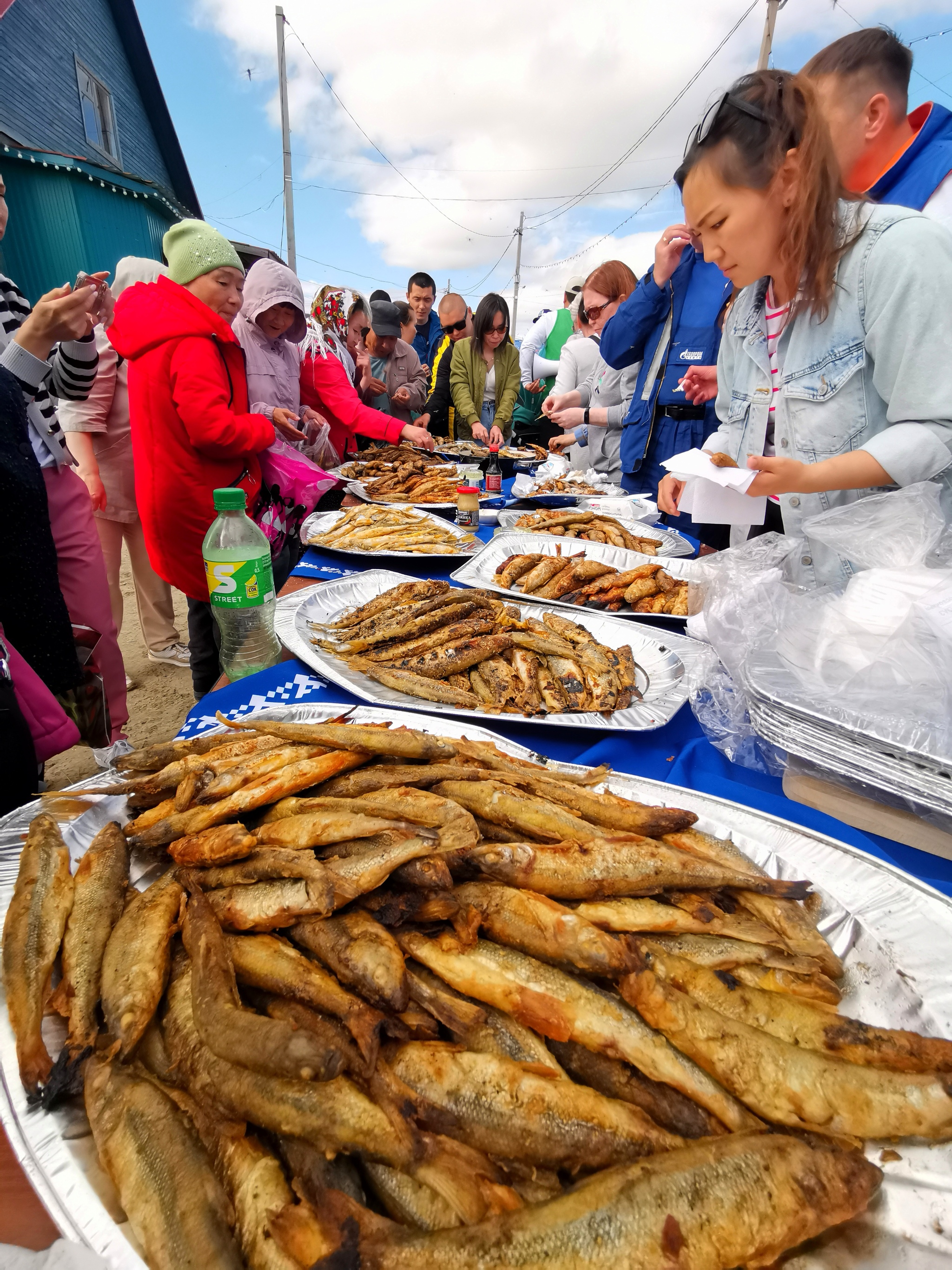 Из вкусного. С самого утра всем поселком мы жарили корюшку! Признаюсь, я был впечатлен размером рыб. Корюшка получилась "пальчики оближешь"! Я даже подумывал забрать домой пакетик. Местные утверждали, что такие гостинцы им удавалось довезти до Астрахани на поезде))