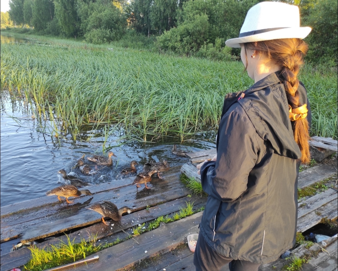Ах, да! Ещё реактивных уток покормили, куда ж без них. Зовёшь их "Ути-ути-ути", и они со скоростью света через заросли к тебе несутся – уморы.