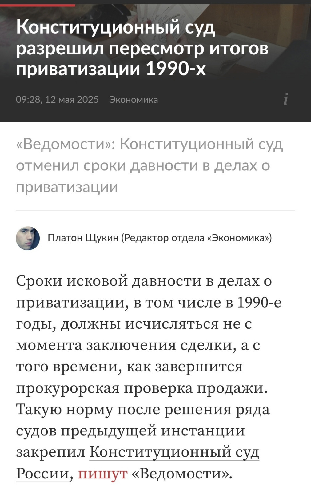 Момент, когда стало известно о нарушении, как и момент самого нарушения, тоже определяет суд. А дату перехода имущества из публичной собственности в частную при приватизации нельзя рассматривать как критерий, который влияет на течение срока исковой давности, считает КС.