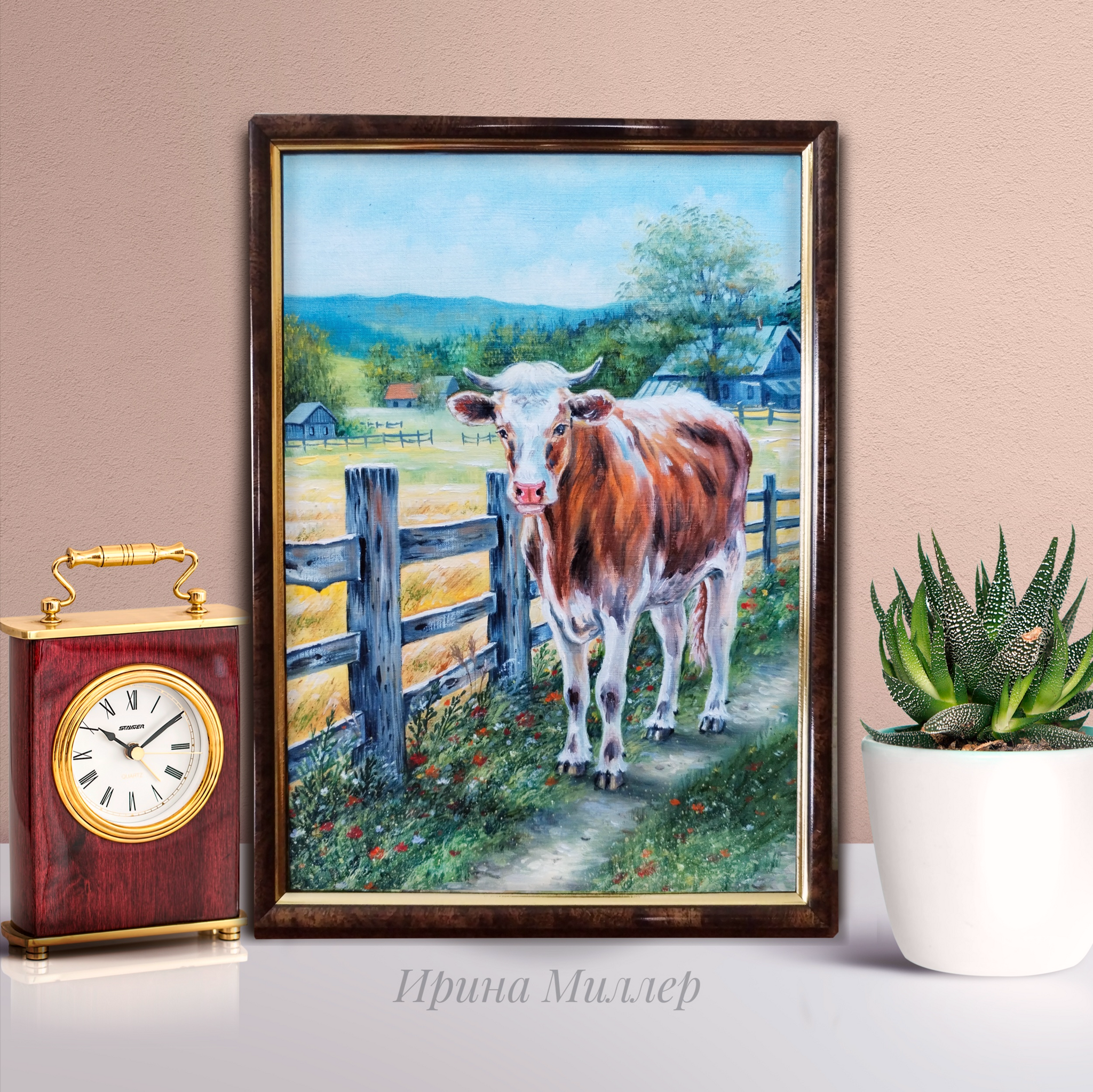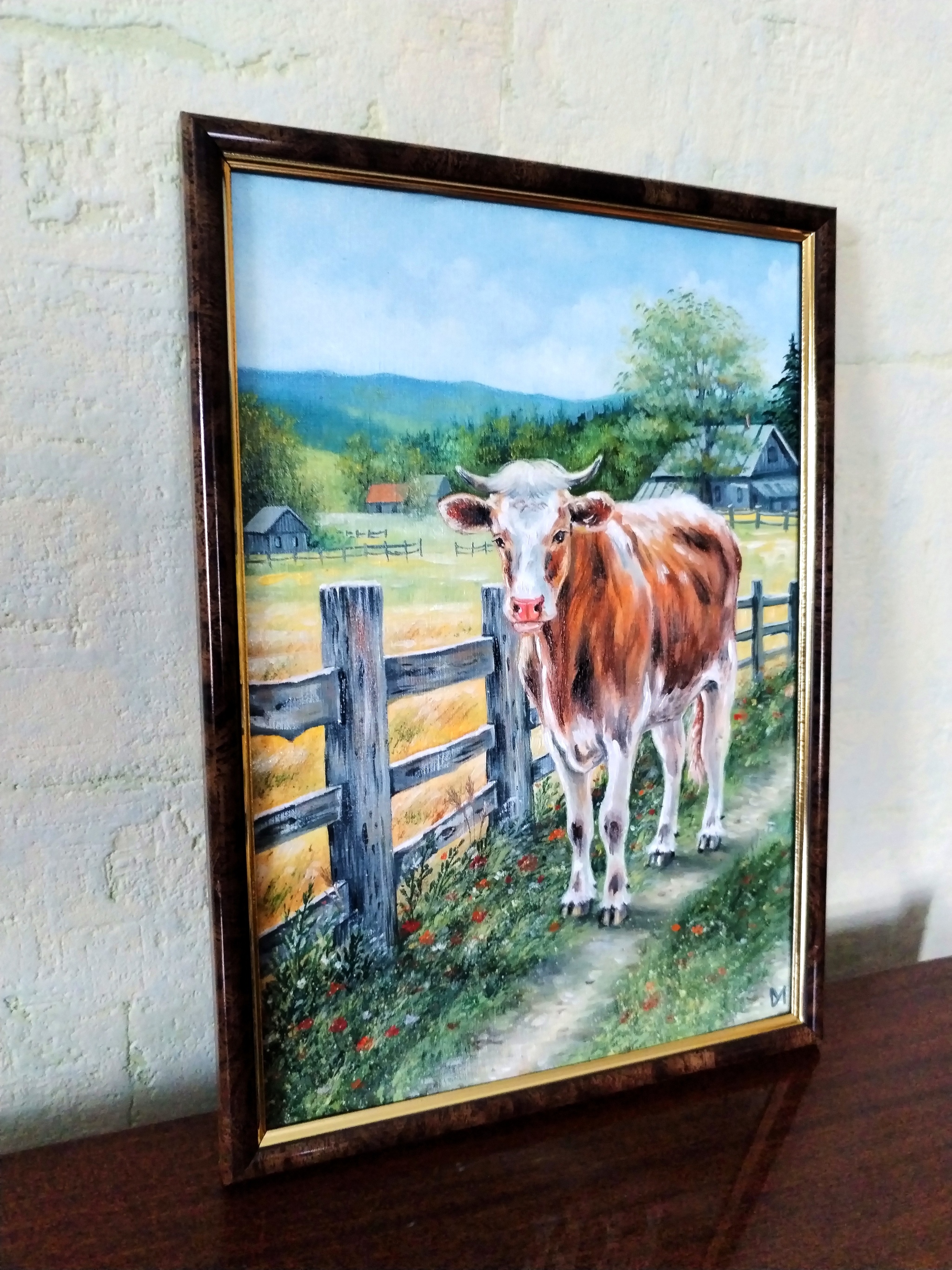 Новая картина маслом "Деревенька", бумажный холст 21*30 см