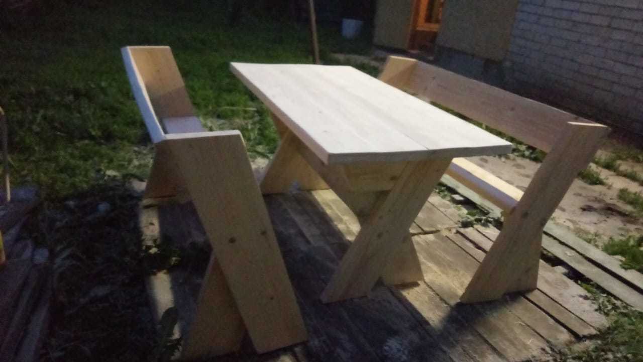 Первый день на этом закончился и перешел в банный вечер. Фоток обжига нет, а видео вставлять сложно (простите). На следующий день смонтировали столбики для лавок. Собрали. Ниже до и после.