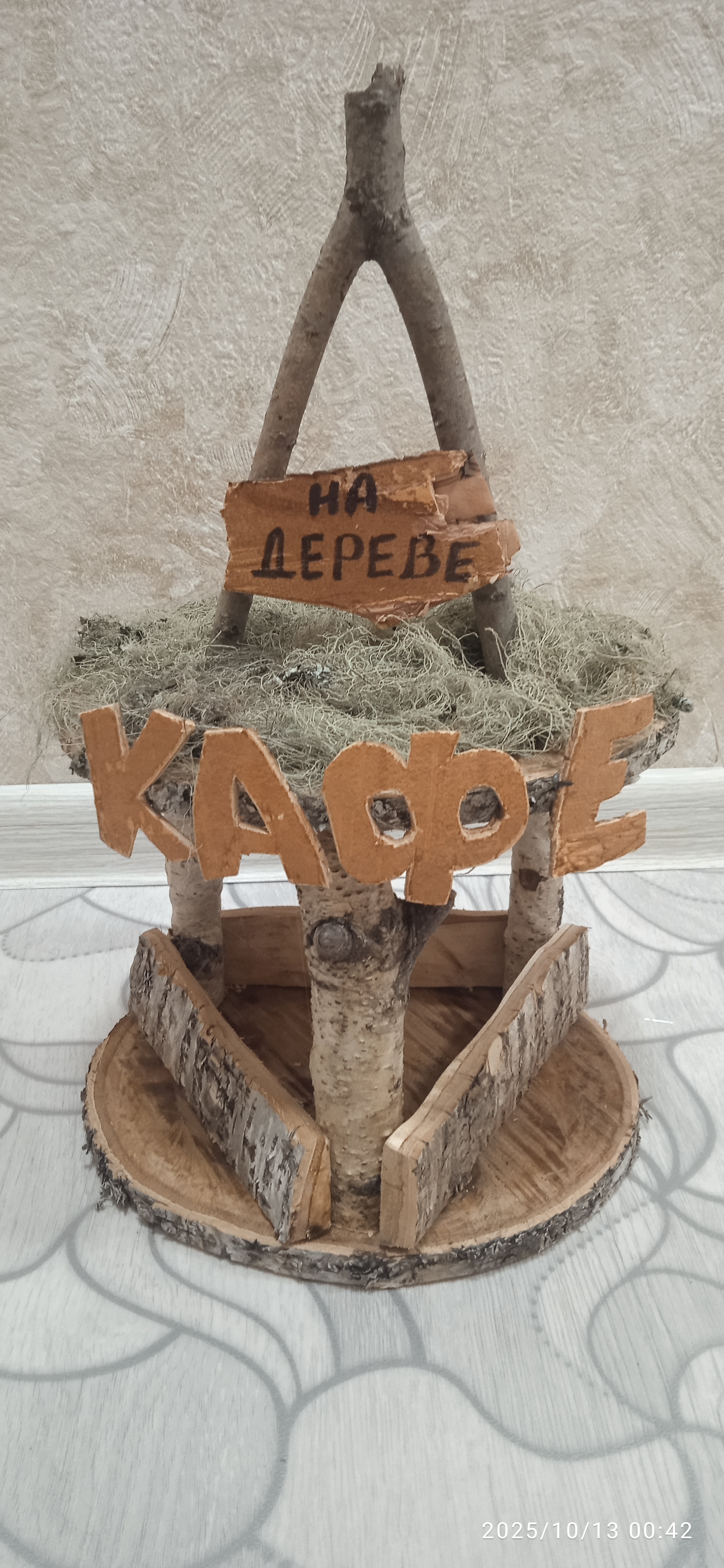 Всем привет. Может кому пригодится идея. Делал ребенку в школу. Использовал два спила от березовой чурки, ветки, березовая кора, мох. По фото я думаю все понятно, но если есть вопросы, пишите, отвечу. Всем удачи и всех благ.