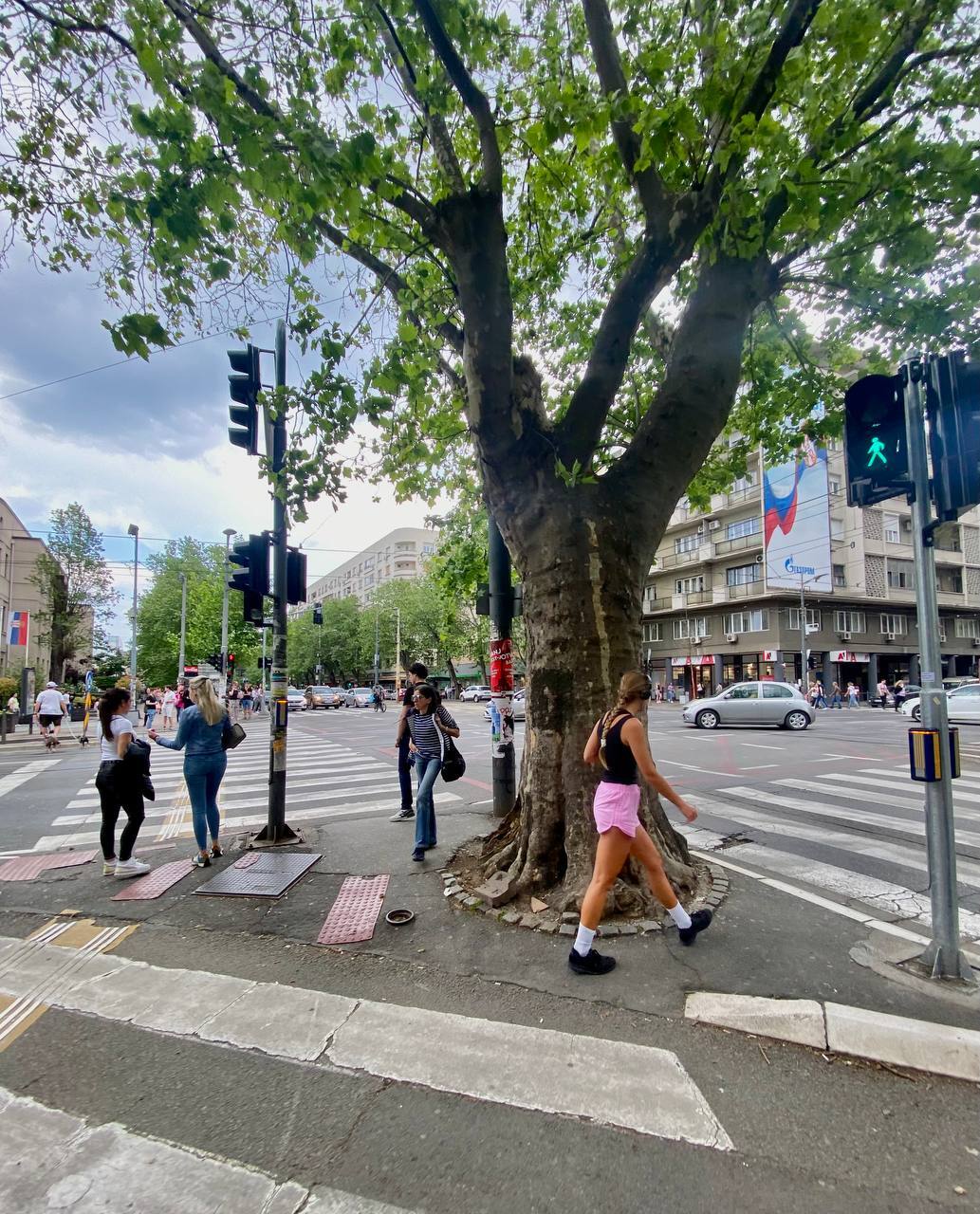 В Белграде на перекрёстке сохранили огромное дерево в нарушение всех мыслимых для РФ ГОСТов. Принцип здравомыслия победил твердолобую слепоту.