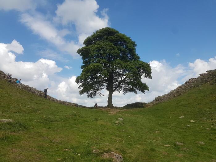 Подросток 16-ти лет спилил знаменитый английский символ "Дерево Робин Гуда". На самом деле этот платан не рос во времена легендарного Робин Гуда. Зато здесь снимался фильм с Кевином Кёстнером. И просто это красивое место вдоль стены Адриана.