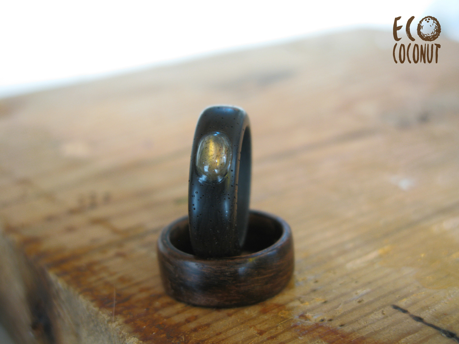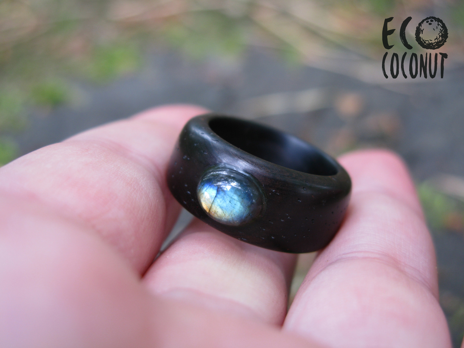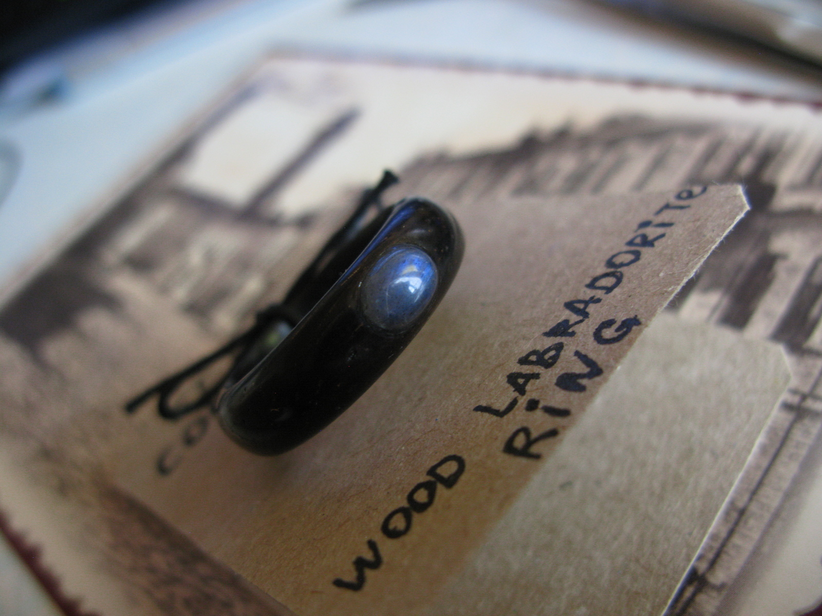 Человек имел в виду лабрадорит, видимо. Все круто, но, мне кажется, дерево перетягивает внимание на себя, посмотреть бы как с черным будет, может камень ярче заиграет.