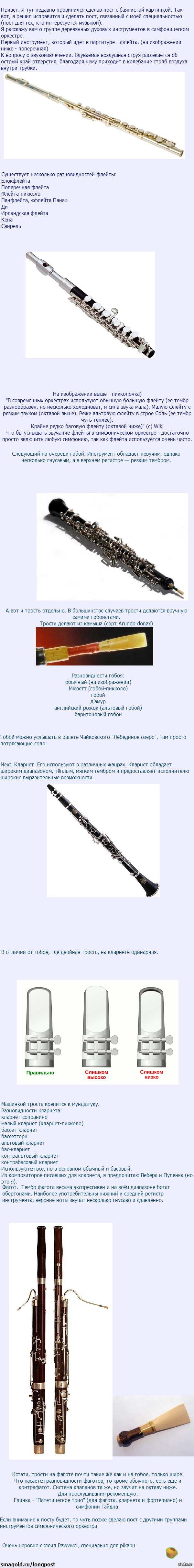 9 pawvwel Деревянные духовые инструменты симфонического оркестра 11 лет назад Прошу извинить за ошибки) Изображения найдены на просторах интернета, как и некоторая информация.) Длиннопост Музыка Оркестр