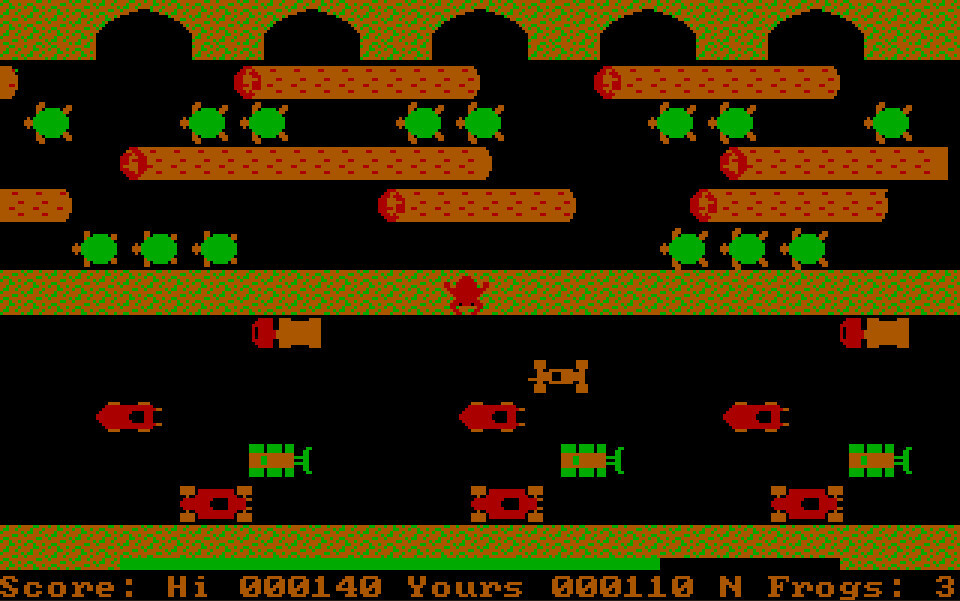 Аркадная игрушка, переизданная на РС Sierra On-Line. Она была везде, потому именно на РС я в неё не играл, насколько помню. На MSX играл. Но процесс был везде одинаковый, так что в список добавляю. Цель — довести лягушку до противоположного края экрана. Лягушка дохнет от любого чиха и не умеет плавать.