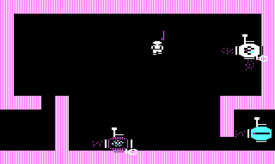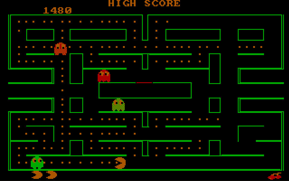 В оригинального пакмэна я не играл — потому что до компьютеров добрался сильно позже. Но клонов у него было немеряно — менялось только оформление, а сама идея игры оставалась всё той же. Лабиринт, надо съесть все точки и не попасться врагам. Есть четыре точки, которые позволяют временно съедать и врагов. Я играл в клона под названием CD-MAN, он в списке будет, но позже.